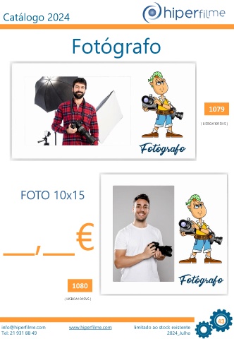 Catálogo 2024 Fotógrafo 1079 ( LISBOA1015HS ) FOTO 10x15 __,__€ 1080 ( LISBOA1015VS ) 43 info@hiperfilme.com www.hiperfilme.com limitado ao stock existente Tel: 21 931 88 49 2024_Julho