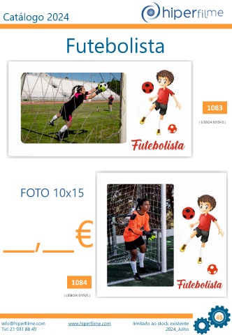 Catálogo 2024 Futebolista 1083 ( LISBOA1015HS ) FOTO 10x15 __,__€ 1084 ( LISBOA1015VS ) 45 info@hiperfilme.com www.hiperfilme.com limitado ao stock existente Tel: 21 931 88 49 2024_Julho