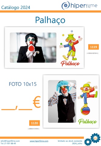 Catálogo 2024 Palhaço 1119 ( LISBOA1015HS ) FOTO 10x15 __,__€ 1120 ( LISBOA1015VS ) 63 info@hiperfilme.com www.hiperfilme.com limitado ao stock existente Tel: 21 931 88 49 2024_Julho