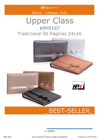 Álbuns - Catálogo 2026 Upper Class KPH5197 Tradicional 60 Páginas 24x16 _BEST-SELLER_ ______ 6 CORES 2026_Abril ANULA E SUBSTITUI TODAS AS TABELAS ANTERIORES Contacte-nos: 21 931 88 49