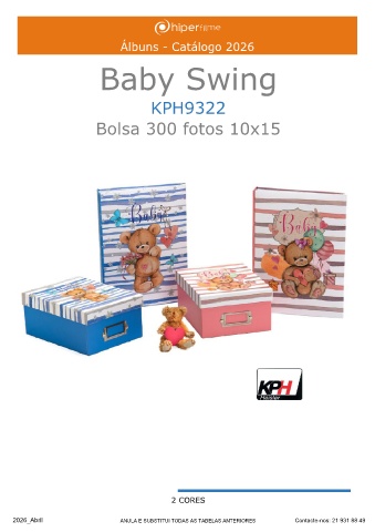 Álbuns - Catálogo 2026 Baby Swing KPH9322 Bolsa 300 fotos 10x15 ______ 2 CORES 2026_Abril ANULA E SUBSTITUI TODAS AS TABELAS ANTERIORES Contacte-nos: 21 931 88 49