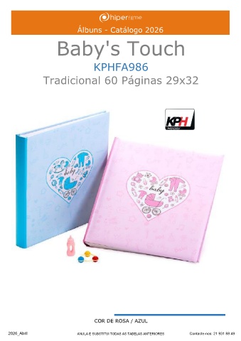 Álbuns - Catálogo 2026 Baby's Touch KPHFA986 Tradicional 60 Páginas 29x32 ______ COR DE ROSA / AZUL 2026_Abril ANULA E SUBSTITUI TODAS AS TABELAS ANTERIORES Contacte-nos: 21 931 88 49