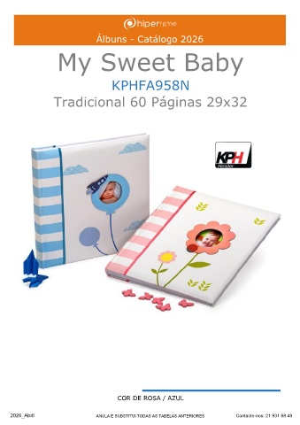 Álbuns - Catálogo 2026 My Sweet Baby KPHFA958N Tradicional 60 Páginas 29x32 ______ COR DE ROSA / AZUL 2026_Abril ANULA E SUBSTITUI TODAS AS TABELAS ANTERIORES Contacte-nos: 21 931 88 49