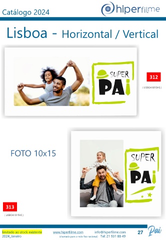 Catálogo 2024 Lisboa - Horizontal / Vertical 312 ( LISBOA1015HS ) FOTO 10x15 313 ( LISBOA1015VS ) limitado ao stock existente www.hiperfilme.com info@hiperfilme.com 27 2024_Janeiro (chamada para a rede fixa nacional) Tel: 21 931 88 49