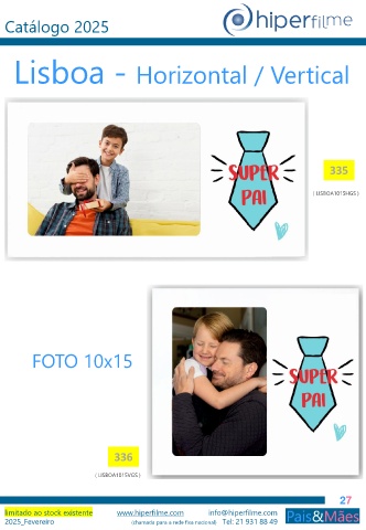 Catálogo 2025 Lisboa - Horizontal / Vertical 335 ( LISBOA1015HGS ) FOTO 10x15 336 ( LISBOA1015VGS ) 27 limitado ao stock existente www.hiperfilme.com info@hiperfilme.com 2025_Fevereiro (chamada para a rede fixa nacional) Tel: 21 931 88 49