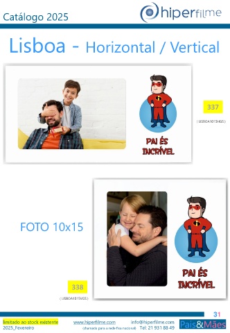 Catálogo 2025 Lisboa - Horizontal / Vertical 337 ( LISBOA1015HGS ) FOTO 10x15 338 ( LISBOA1015VGS ) 31 limitado ao stock existente www.hiperfilme.com info@hiperfilme.com 2025_Fevereiro (chamada para a rede fixa nacional) Tel: 21 931 88 49