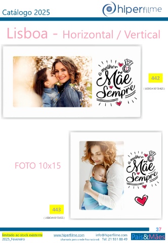 Catálogo 2025 Lisboa - Horizontal / Vertical 442 ( LISBOA1015HGS ) FOTO 10x15 443 ( LISBOA1015VGS ) 37 limitado ao stock existente www.hiperfilme.com info@hiperfilme.com 2025_Fevereiro (chamada para a rede fixa nacional) Tel: 21 931 88 49