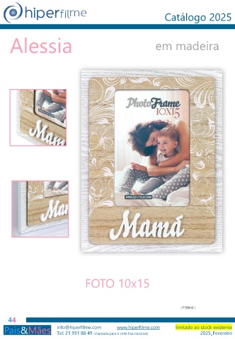 Catálogo 2025 Alessia em madeira FOTO 10x15 ( FE8846 ) 44 info@hiperfilme.com www.hiperfilme.com limitado ao stock existente Tel: 21 931 88 49 (chamada para a rede fixa nacional) 2025_Fevereiro