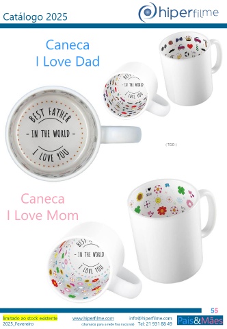 Catálogo 2025 Caneca I Love Dad ( TCID ) Caneca I Love Mom 55 limitado ao stock existente www.hiperfilme.com info@hiperfilme.com 2025_Fevereiro (chamada para a rede fixa nacional) Tel: 21 931 88 49