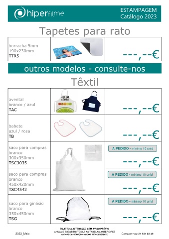 2023_Maio ARTIGOS EM PROMOÇÃO - APENAS STOCK EXISTENTE Contacte-nos: 21 931 88 49